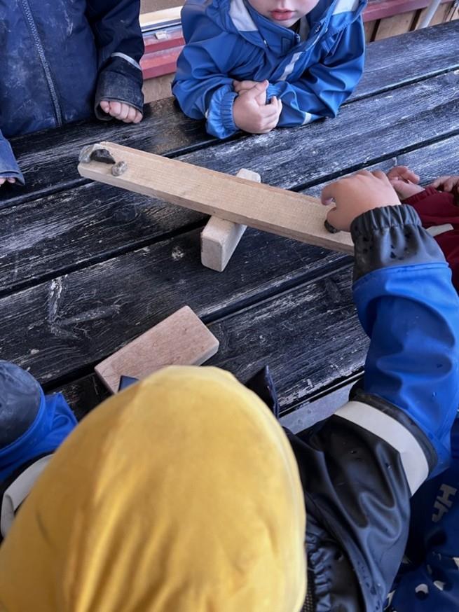 | Vi leker med duplo, byggeklosser, togbane, enkle puslespill osv. | Vi utforsker naturen og sammenlikner størrelser, form og antall, bruker naturen som læringsarena. | Vi spiller og eksperimenterer med matematiske sammenhenger (former, symmetri, mønster, butikklek med penger) |